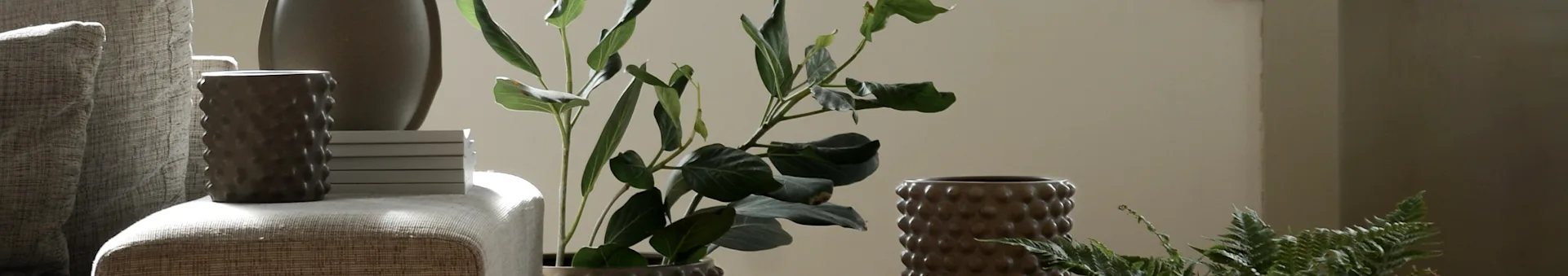 Os vasos e as jarras são em tons de terra e têm texturas cativantes e formas diferentes. A série Rope resume claramente a linguagem de cor e design da empresa, com vasos que têm uma forma fresca e são tão bonitos na sua estante como na mesa de jantar. Juntamente com um belo bouquet, torna-se a cereja no topo do bolo!