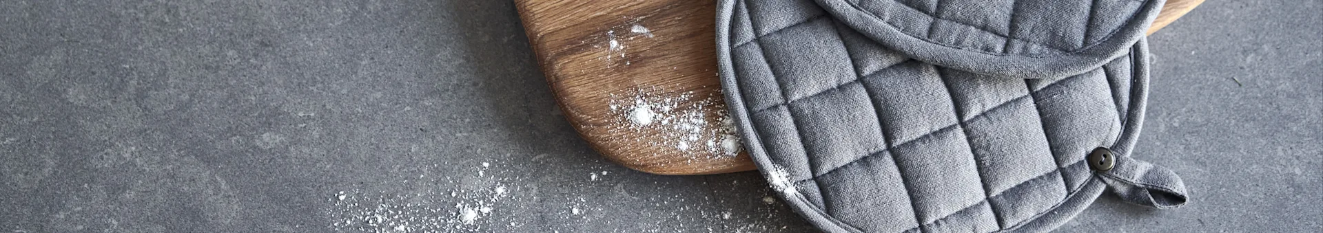 Mais frequentemente, as luvas de forno e as luva de forno são feitas de tecido, mas também é comum escolher uma prática pega de silicone. Estes são fáceis de lavar e oferecem uma boa protecção contra o calor de bolores e panelas. Os suportes de tecido também fornecem uma boa protecção contra o calor, mas precisam de ser lavados para ficarem limpos. Na nossa gama pode também encontrar porta-rolhas de couro e luvas de forno. Estes precisam de ser tratados de acordo com as recomendações do fornecedor, de modo a durarem o máximo de tempo possível.