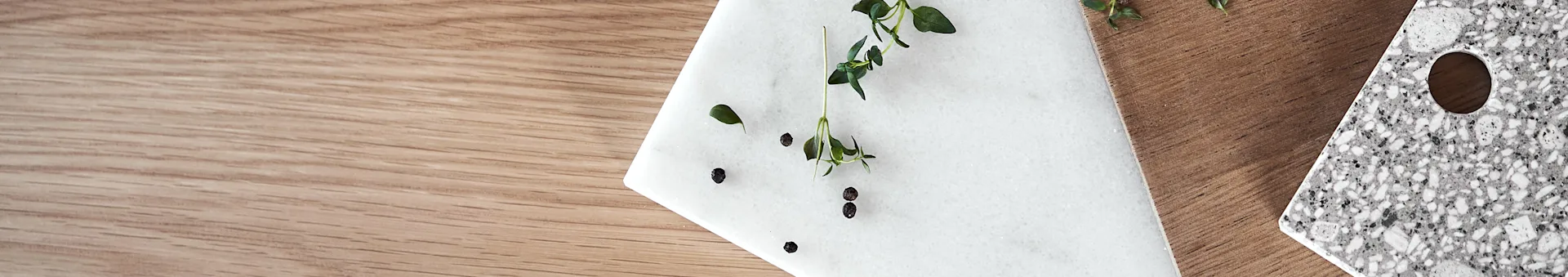 Existem muitos tipos diferentes de madeira para tábuas de corte, os mais comuns são as tábuas de carvalho, as tábuas de nogueira e as tábuas de ácer. Se quiser uma tábua de corte extra luxuosa, deve escolher uma tábua de corte de grão final. Temos variantes de tábuas de corte de madeira de ponta da Kockums Jernverk e Continenta. Uma tábua de corte de madeira pode ser usada para a maioria das coisas como pão, carne e vegetais. Para o pão, pode ser bom escolher uma com uma estrutura de nervuras para recolher as migalhas. Para a carne, é bom ter uma tábua de cortar com um entalhe à volta para manter os sumos de carne dentro. Aqui na Nordic Nest, encontrará variações nas tábuas de corte de madeira deMarkus Aujalay, House Doctor e Ferm Living.