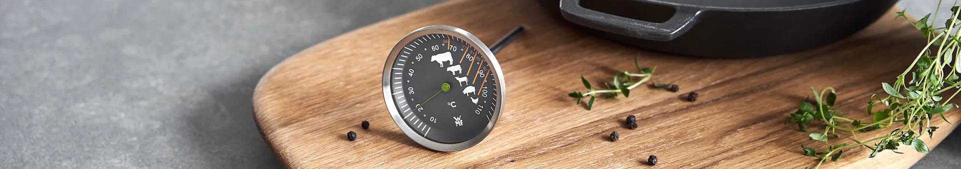No nosso sortido, pode escolher entre alguns dos melhores termómetros de carne de marcas famosas como WMF, Eva Solo e Satake.