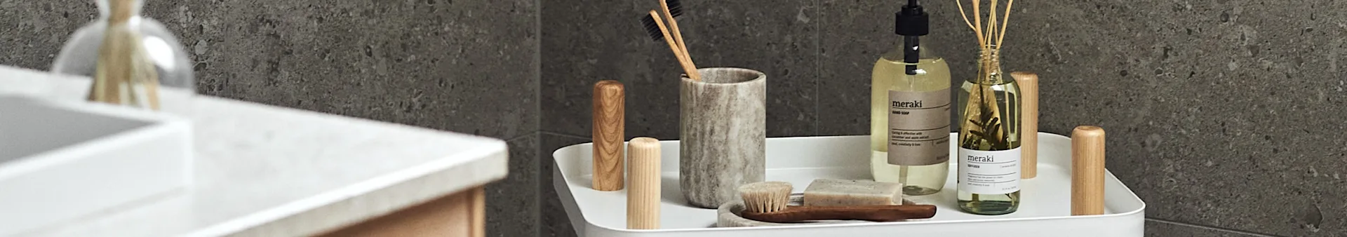 Algumas marcas lançam acessórios para casa de banho em coleções. Um ótimo exemplo é a coleção Cement de artigos para casa de banho da House doctor. Obtenha todos os acessórios para casa de banho de uma coleção específica para criar um visual coerente no seu casa de banho. Isto contribui para uma atmosfera mais organizada e consciente do estilo no seu casa de banho.