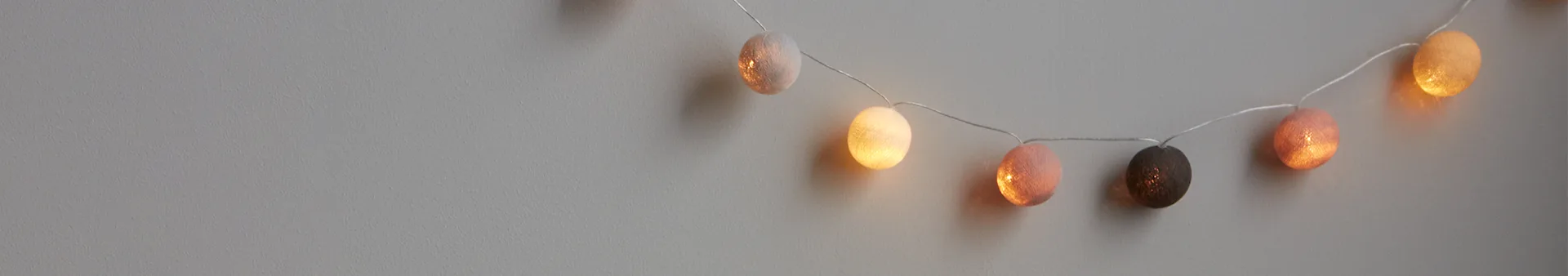 As luzes de corda de bola são uma forma maravilhosa de dar um toque de cor aos seus interiores, ao mesmo tempo que espalha uma luz quente e acolhedora. Aqui pode escolher entre uma gama de luzes de fadas coloridas de marcas escandinavas populares. Recomendamos a marca sueca Irislights para uma grande variedade de luzes de fadas de bola em belas combinações de cores, desde o azul pastel, amarelo e rosa a tons neutros de bege e creme.