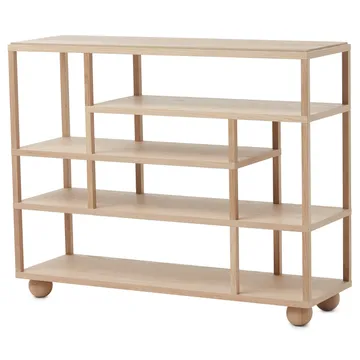 A Prateleira Show da A2 de Småland tem um design leve e aberto com prateleiras sobrepostas em vários níveis. A prateleira é desenhada por Sara Larsson e fica firmemente em quatro pés esféricos. Use-a como um elegante divisor de ambientes ou como uma clássica estante de livros ao lado de uma parede. Combine-a com o suporte de livros correspondente para uma exibição ainda mais elegante.