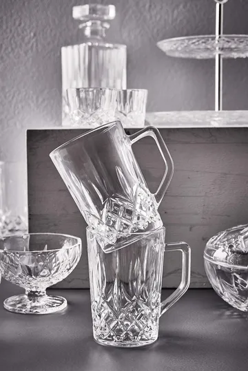 Copo de café com pega Harvey 27,5 cl 4 un. da marca dinamarquesa Aida são quatro copos com um padrão lindo esculpido inspirado em copos de cristal clássicos – perfeitos para tudo, desde água até bebidas de café. Combine-os com as outras partes da série Harvey para uma sensação uniforme.