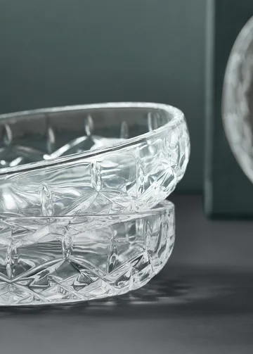 Prato Harvey Ø16 cm, 4 un. da Aida são belos pratos de vidro inspirados na forma de cristal e decorados com um padrão único que dá carácter à mesa. As bordas ligeiramente mais altas mantêm migalhas e molhos no prato, perfeitos para sobremesas, pequeno-almoço ou petiscos. Podem ir à máquina de lavar loiça e funcionam na perfeição com os restantes produtos da série Harvey para uma decoração de mesa cuidada. Uma melhoria prática e decorativa para o dia a dia ou quando deseja preparar uma mesa mais elegante.