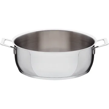 Panela para forno rasa Pots&Pans da Alessi é perfeita para cozinhar e aquecer de tudo, desde molhos até guisados substanciosos. A panela é feita de aço inoxidável com acabamento de alto brilho e vem equipada com duas alças práticas para fácil manuseio. O design minimalista e elegante foi criado por Jasper Morrison, assim como o restante da série Pots&Pans.