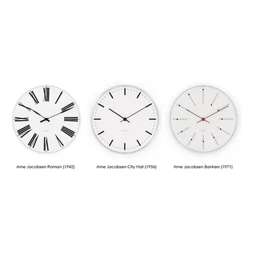 Relógio de parede Arne Jacobsen Bankers da Arne Jacobsen Clocks é um relógio de parede intemporal desenhado por Arne Jacobsen em 1971. Originalmente criado para o Nationalbanken da Dinamarca, captura a silhueta clássica e os pormenores lúdicos, como a espiral contínua que mostra elegantemente a passagem do tempo. O relógio apresenta vidro mineral, uma caixa do movimento em alumínio e um mecanismo quartz para uma cronometragem fiável. Como ícone em casa, funciona tão bem na entrada, na cozinha ou na sala de estar, proporcionando carácter ao espaço sem se sobrepor. Uma clássica peça de design perfeita para quem aprecia um design ponderado.