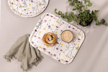Herbarium bandeja Ø38 cm da Åry Home é uma bandeja redonda que se torna o detalhe perfeito de decoração para quem deseja criar uma sensação de relaxamento e naturalidade em casa. As belas folhas verdes e flores na bandeja transmitem uma sensação de calma e harmonia. A bandeja é feita de material de alta qualidade e é fácil de limpar. Use-a como bandeja de servir ou como um detalhe decorativo na mesa.