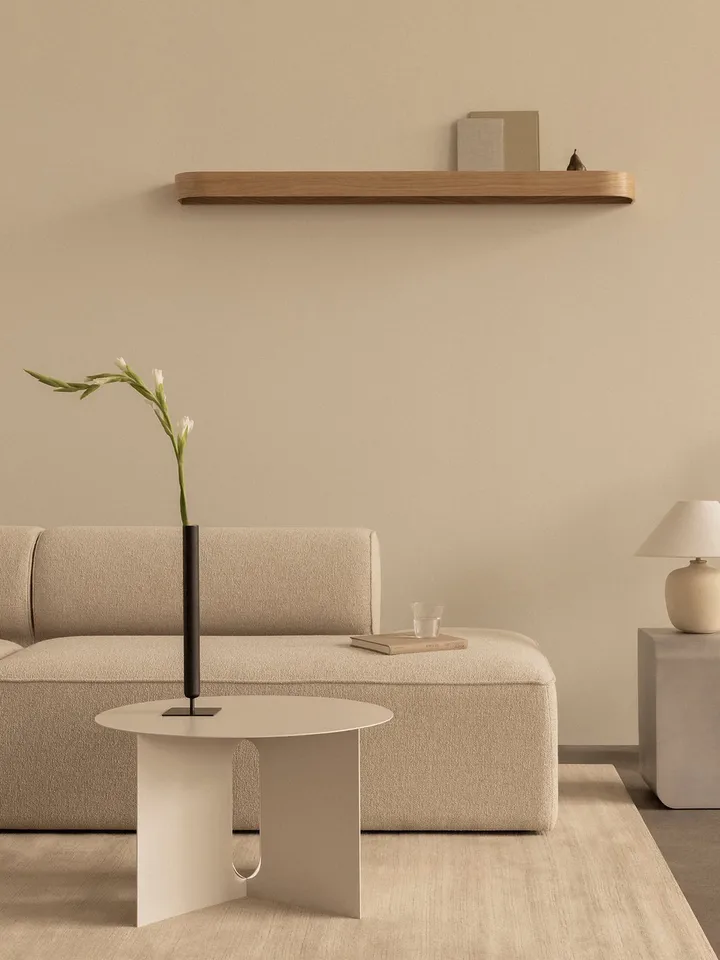 A prateleira Epoch 150 cm da Audo Copenhagen é feita de madeira folheada e oferece uma solução elegante para armazenamento e decoração. O design prático possui uma prateleira profunda para objetos do dia a dia e um espaço para exibir objetos decorativos. Perfeito para espaços pequenos e grandes, pode ser pendurado horizontalmente ou verticalmente para criar um armazenamento flexível e elegante.