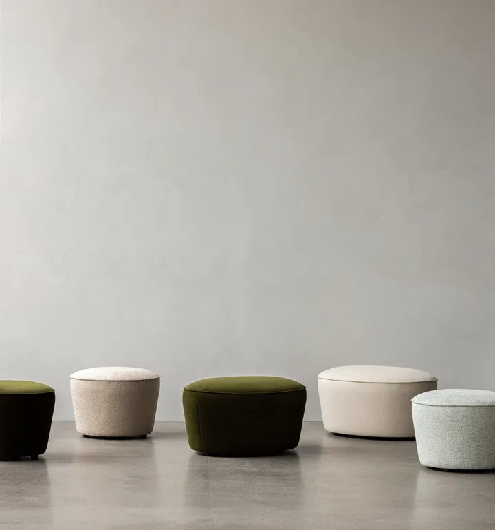 Puff Cairn Ø60 cm da marca dinamarquesa Audo Copenhagen é desenhado por Nick Ross e o puff redondo possui uma forma afunilada que lhe confere uma bela silhueta. O puff de tecido pode ser usado tanto como apoio para pés junto ao seu sofá ou poltrona, quanto como um assento extra quando receber convidados.