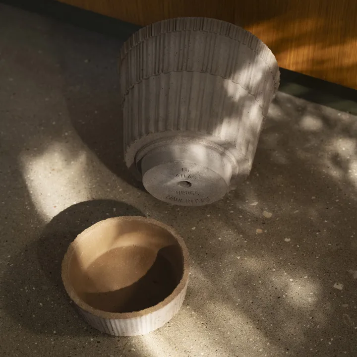 Atlas vaso cru de Bergs Potter é um vaso robusto e elegante feito de 100% terracota. Inspirado no titã mitológico Atlas, este vaso de terracota é adornado com padrões circulares e linhas verticais que simbolizam força e estabilidade. O prato incluído complementa perfeitamente o design, e as variações na terracota tornam cada vaso único.