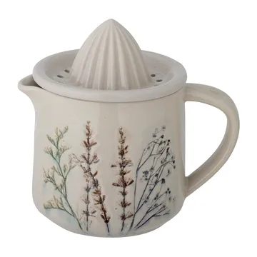 Espremedor de citrinos Bea 14 cm da Bloomingville é um espremedor de citrinos com recipiente feito de grés com uma pega prática para servir facilmente a bebida espremida. O espremedor de citrinos também é perfeito para ser usado em pastelaria e culinária, já que diferentes tipos de citrinos podem ser espremidos com facilidade.