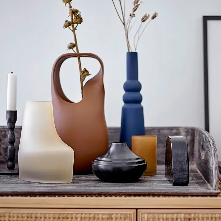 Vaso com pega Nicita 28,5 cm da Bloomingville dinamarquesa é um interessante vaso de cerâmica com design inovador. Junto com o buquê, a pega do vaso cria uma silhueta que lhe dá um visual completamente único. O vaso é igualmente adequado como parte da mesa festiva posta como no parapeito da janela.