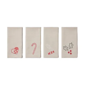 Guardanapo de pano Fryd 45x45 cm 4 unidades da dinamarquesa Broste Copenhagen são guardanapos feitos de algodão adornados com bordados temáticos de Natal. Os belos guardanapos de pano criam uma sensação acolhedora e fazem seus convidados se sentirem bem cuidados nas refeições de Natal.