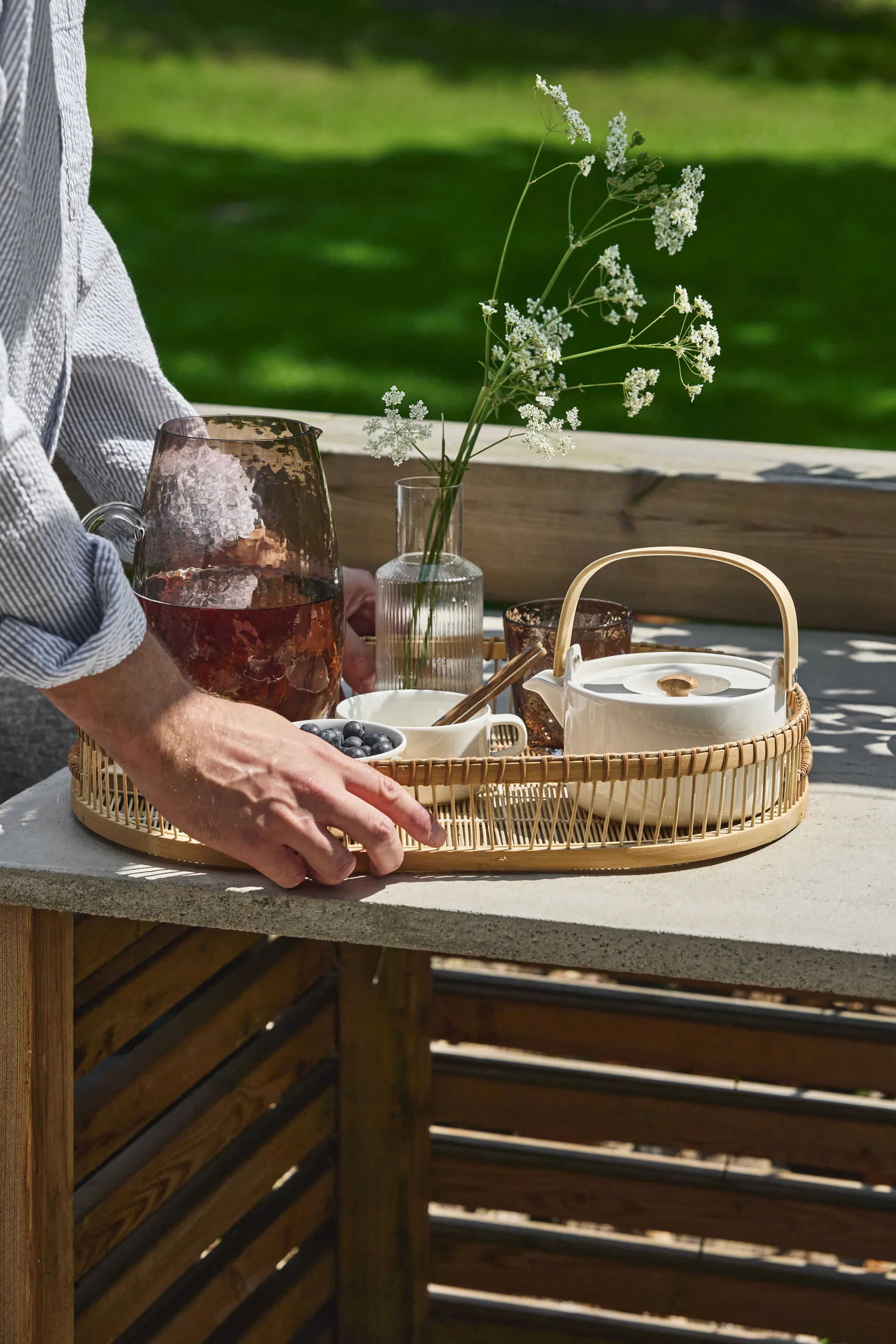 Belo jarro que é soprado à mão da danesa Broste Copenhagen. O vidro tem uma estrutura desigual, o que torna cada jarro único e vibrante. Escolha entre diferentes cores do jarro e combine com bonitos copos da mesma série para uma bela mesa posta.