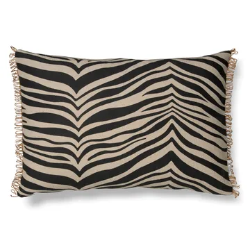 Almofada com padrão de zebra da Classic Collection no tamanho 40x60 cm. A Almofada Zebra tem um padrão impresso à mão na frente e um verso liso com fecho de correr na lateral. As franjas com laços de juta nas laterais curtas são um detalhe decorativo que dá à almofada uma sensação de luxo.