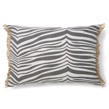 Almofada com padrão de zebra da Classic Collection no tamanho 40x60 cm. A Almofada Zebra tem um padrão impresso à mão na frente e um verso liso com fecho de correr na lateral. As franjas com laços de juta nas laterais curtas são um detalhe decorativo que dá à almofada uma sensação de luxo.