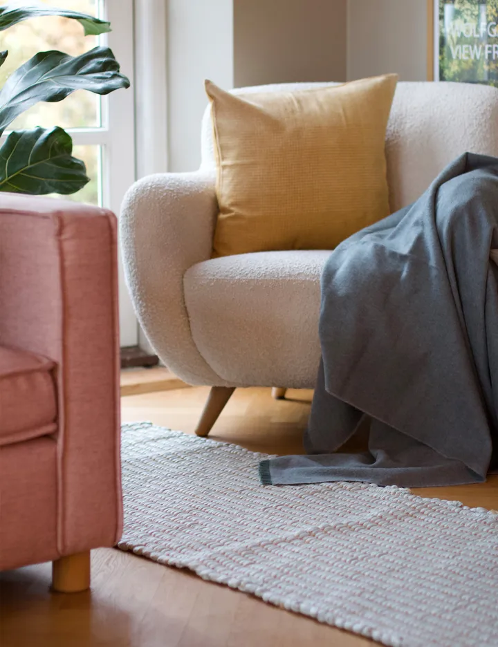 Tapete Walnut 60x150 cm da Elvang Denmark é fabricado com fibras recicladas da indústria têxtil e é composto por uma mistura de algodão, poliéster e viscose que foi tecida junto com juta. O tapete feito à mão tem a marca Fair Trade, o que significa que os fabricantes garantem boas condições de trabalho e pagam justamente aos trabalhadores. O tapete alongado é igualmente adequado para o banheiro e a cozinha e cria uma sensação acolhedora e aconchegante.