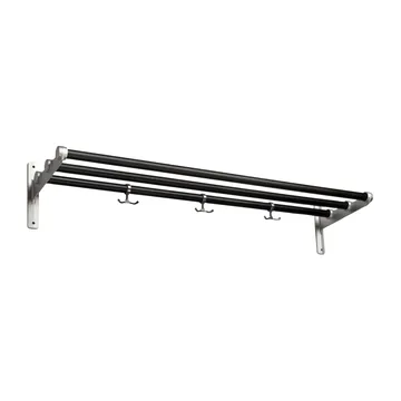 A Chapeleiro/sapateira Nostalgi da Essem Design é um cabideiro e sapateira em um só! Desde que foi desenhada por Gunnar Bolin em 1937, tornou-se um verdadeiro clássico do design de móveis sueco. Os suportes são feitos de alumínio reciclado que sustentam varas redondas de madeira ou metal. O chapeleiro/sapateira Nostalgi vem com três ganchos de âncora que você pode facilmente remover quando a prateleira deve ser usada como sapateira. Hall de entrada grande e espaçoso? O chapeleiro/sapateira Nostalgi da Essem Design é flexível e pode ser estendido com a ajuda de uma peça adicional, e assim se tornar exatamente tão longo quanto você desejar. Para se adaptar a um hall de entrada menor, você pode cortar as varas no comprimento desejado. Monte vários chapeleiros/sapateiras Nostalgi em série para mínima limpeza e máxima armazenagem de sapatos!