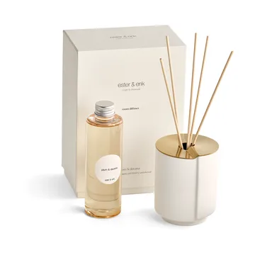As varetas perfumadas Ester & Erik irão criar uma atmosfera aconchegante e convidativa assim que você entrar pela porta. Você decide a intensidade do aroma ao colocar mais ou menos varetas no recipiente de cerâmica. Um detalhe bonito que fica elegante em qualquer ambiente!
