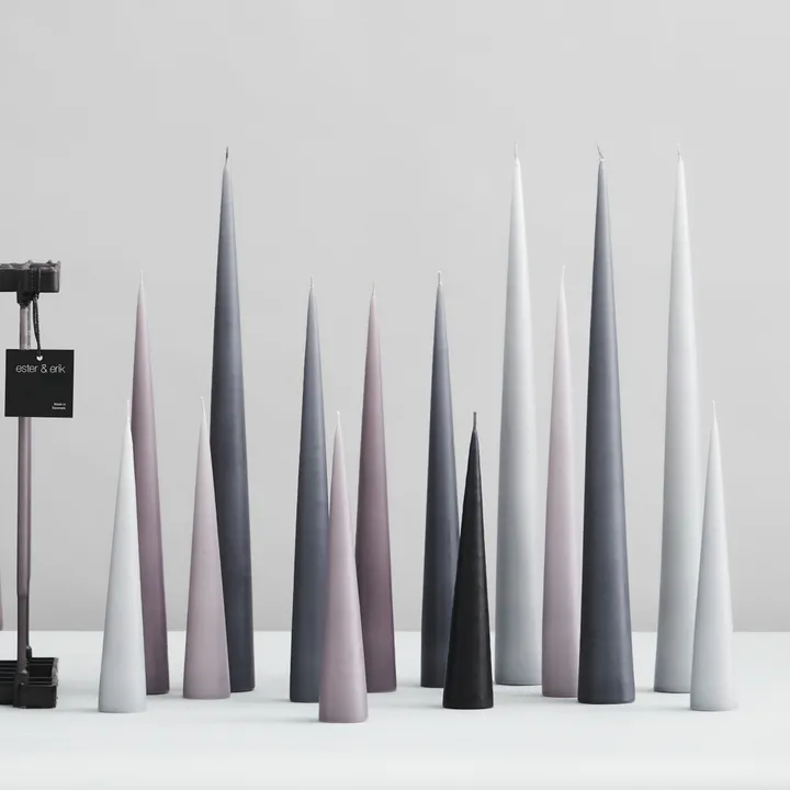 velas ester & erik são velas exclusivas feitís à mão que se adequam a todas as ocasiões. As velas têm um design elegante em forma de cone que permite que fiquem em pé sozinhas, ou seja, um castiçal não é necessário. Coloque a vela em um prato para velas ou bandeja de vidro ou mármore. As velas são autoapagáveis e adicionam um toque atmosférico à mesa posta. Disponíveis com acabamento mate ou lacado.