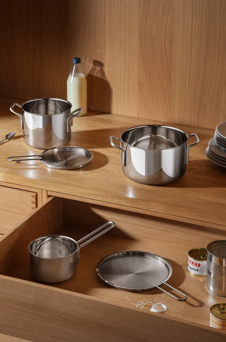 Tacho Eva Trio Stainless Steel da Eva Solo é fabricado em 90% aço inoxidável reciclado. A construção robusta com fundo sandwich encapsulado proporciona distribuição de calor uniforme, perfeita para sopas e guisados. Concebido por Ole Palsby, este tacho faz parte da série Eva Trio e é compatível com tampas Eva Trio.