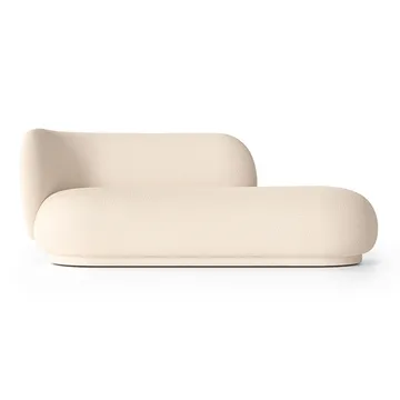 Espreguiçadeira Rico divã bouclé esquerda da Ferm Living é um módulo lounge independente com conforto de assento firme e um encosto envolvente e escultural. A espreguiçadeira, generosamente dimensionada, é estofada em um tecido bouclé com trama grossa e tátil que confere profundidade e caráter ao design. Como peça solitária, cria um convite ao descanso na sala de estar, no quarto ou no canto de leitura, tornando-se um ponto focal natural no ambiente. Uma espreguiçadeira elegante que combina design escandinavo, alto conforto e um estilo quente e moderno.