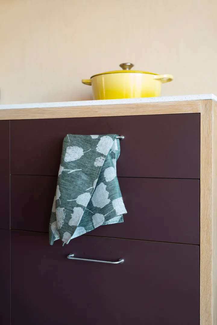 Pano de cozinha Bouquet 58x58 cm da Fine Little Day é um belo têxtil de cozinha desenhado por Isis Maakestad. O padrão Bukett foi tecido numa coleção de linho em jacquard, onde as cores se invertêm em cada lado, oferecendo dois looks na mesma tea. Confeccionado em 100% linho com boa capacidade de absorção e fibras duráveis, perfeito tanto para secar como para decoração na cozinha. Um têxtil funcional e sustentável que fica tão bem sobre a bancada como quando está pendurado.