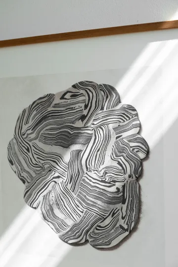 Póster Hoshino do sueco Fine Little Day apresenta um motivo de argila marmorizada enrolada à mão com influências japonesas desenhado pela ceramista Frida Mälarborn Hoshino. Hoshino é um póster em preto e branco que fica tão bem na sala de estar quanto no quarto, pendure-o sozinho na parede ou combine com outros posters e cartazes em uma parede de quadros.