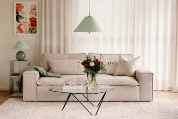 Iris candeeiro suspenso 50 da Globen Lighting tem um abat-jour artesanal em algodão que, juntamente com elegantes detalhes em latão, cria uma expressão suave e harmoniosa. A fonte de luz oculta, por detrás de um difusor em algodão, espalha uma luminosidade agradável, perfeita sobre a mesa de jantar ou no quarto. Com o seu cabo têxtil de cor madrepérola, a lâmpada torna-se uma bela peça decorativa na divisão – tão ornamental quanto funcional.