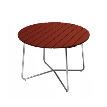 Mesa de jantar 9A, Carvalho vermelho-escuro lacado–estrutura galvanizada a quente Ø100 cm Grythyttan Stålmöbler