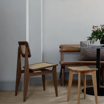 A Cadeira C-Chair da GUBI é um clássico intemporal desenhado por Marcel Gascoin. Com origem em 1947, apresenta um design ponderado que combina simplicidade e funcionalidade — perfeito para casas onde o espaço é precioso. A cadeira é habilmente concebida com enfoque nos pormenores e numa construção robusta, tornando-a igualmente útil à mesa de jantar ou em pequenos cantos de leitura. Uma forma que transmite calor e praticidade, criada para as necessidades do quotidiano, mas com uma identidade de design clara que valoriza a sua casa.