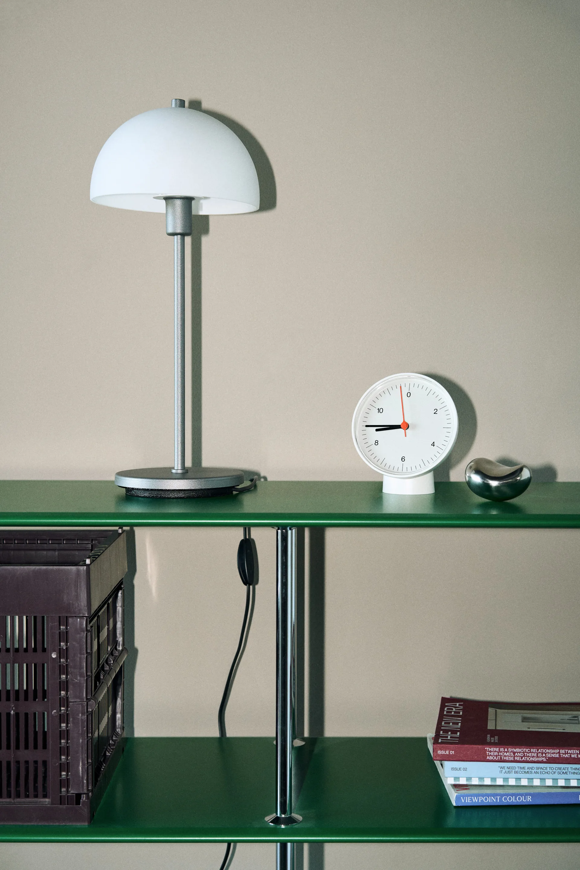 Relógio de Parede/Mesa Table Clock da HAY é um relógio de mesa moderno que também pode ser usado como um relógio de parede. É Jasper Morrison quem está por trás do design inteligente do relógio onde o próprio relógio pode ser separado do suporte de mesa. Este relógio com mecanismo silencioso e ponteiros deslizantes é um detalhe tanto elegante quanto prático para a sua casa.