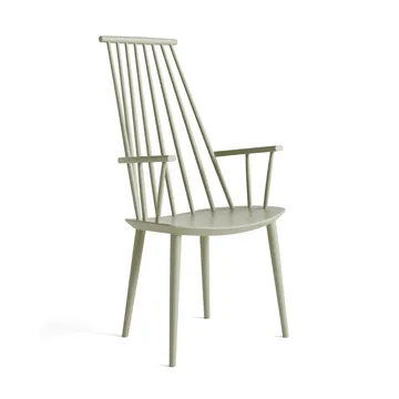 A Cadeira com braços J110 da HAY foi criada por Poul M. Volther. As altas varas de madeira no encosto criam um efeito fascinante de jogo de sombras quando o sol incide. Perfeita tanto para a sala de jantar como para a sala de estar, este design intemporal oferece conforto e estética num só.