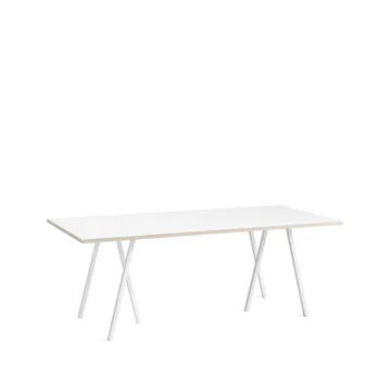 Mesa de jantar Loop Stand da HAY, desenhada por Leif Jørgensen, é uma mesa elegante com pernas distintas que se podem montar facilmente no tampo. Para tampos com mais de 200 cm, recomenda-se o Loop Stand Support para estabilidade e durabilidade a longo prazo.