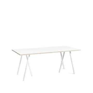 Mesa de jantar Loop Stand da HAY, desenhada por Leif Jørgensen, é uma mesa elegante com pernas distintas que se podem montar facilmente no tampo. Para tampos com mais de 200 cm, recomenda-se o Loop Stand Support para estabilidade e durabilidade a longo prazo.