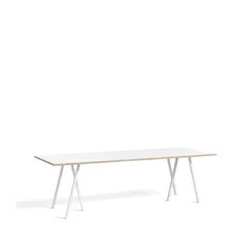 Mesa de jantar Loop Stand da HAY, desenhada por Leif Jørgensen, é uma mesa elegante com pernas distintas que se podem montar facilmente no tampo. Para tampos com mais de 200 cm, recomenda-se o Loop Stand Support para estabilidade e durabilidade a longo prazo.