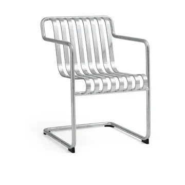 A Cadeira com braços Palissade Cantilever Dining é uma cadeira de exterior elegante e fácil de colocar da HAY que combina design moderno com elevado conforto. A sua estrutura em balanço cria uma aparência leve e uma sensação de assento ligeiramente flexível, perfeita para longos jantares ou momentos de descontração no jardim. Fabricada em aço com pintura eletrostática resistente às intempéries ou em aço galvanizado a quente, a cadeira é durável face ao sol, à chuva e ao vento, sem necessidade de manutenção. A forma minimalista e os materiais duradouros permitem que a Cadeira com braços Palissade Cantilever Dining se combine facilmente com outras peças da coleção Palissade, criando um ambiente exterior elegante, funcional e acolhedor.