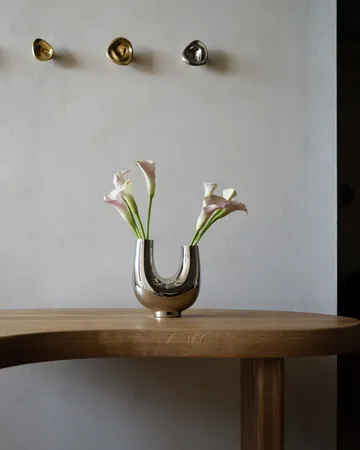 Kenzan vaso da Hein Studio é feito de latão fundido e polido à mão. O vaso, desenhado por Rebecca Hein, reflete a luz lindamente dependendo de como é colocado e torna-se um detalhe decorativo elegante com uma sensação escultórica. Coloque-o na mesa, na janela ou numa prateleira – com ou sem flores – e deixe-o criar calma e harmonia no ambiente.