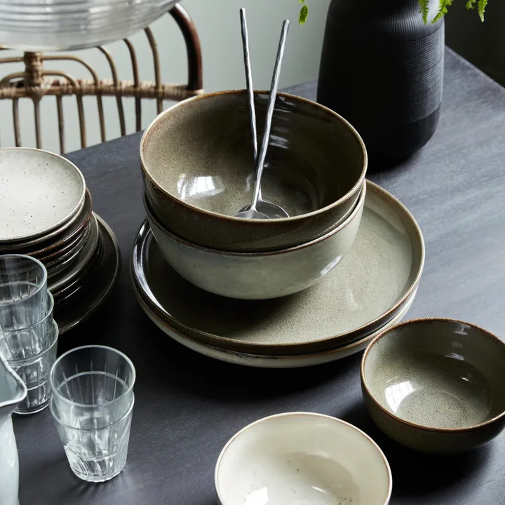 Tigela Lake Ø22 cm da House Doctor é uma taça de grés concebida para as mesas do dia a dia e jantares demorados. O verniz verde-escuro calmante confere uma sensação de calor e emoldura a comida, proporcionando a cada prato um fundo elegante. A taça é ideal tanto para saladas de massa, guisados ou sopas, tornando-se rapidamente uma peça fiável da loiça. Pequenas variações no verniz e pormenores rústicos tornam cada exemplar único e dão personalidade à mesa.