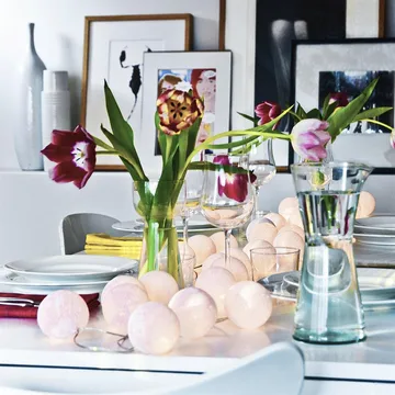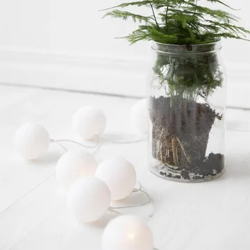 Luzes Irislights Pure White da Irislights são pequenas fontes de luz feitas à mão que criam um brilho quente e acolhedor em casa. As bolas de fio, viradas à mão, captam a luz e projectam sombras suaves — perfeitas para valorizar uma mesa posta, realçar um vaso ou dar vida a um espelho. Fáceis de colocar isoladamente ou em grupo, as Irislights proporcionam atmosfera imediata e funcionam tanto como um detalhe decorativo como iluminação indirecta. Um elemento de decoração encantador e pessoal que torna o espaço mais convidativo.