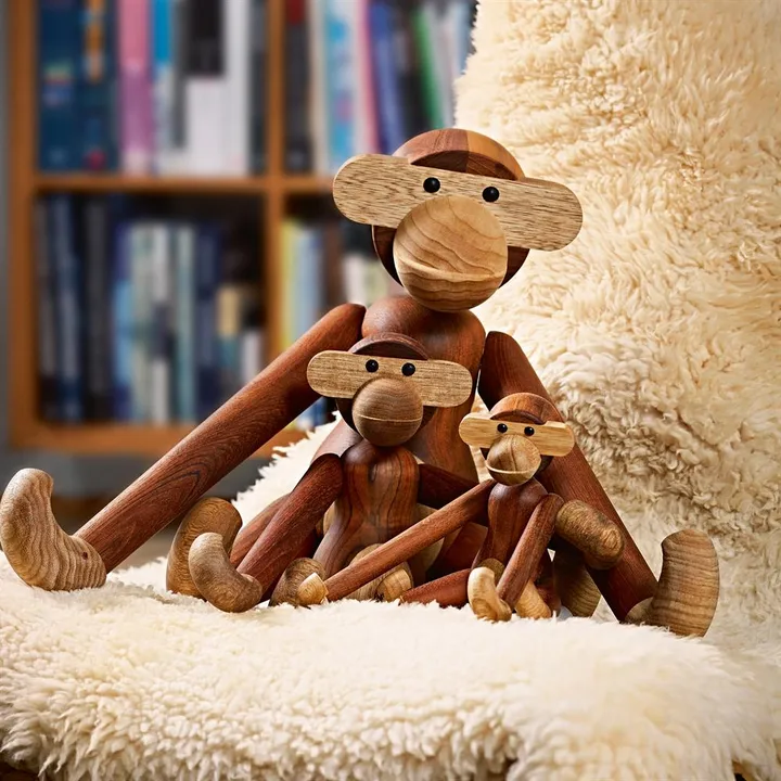 Macaco de madeira grande Kay Bojesen da Kay Bojesen Denmark é uma figura de madeira calorosa e querida, concebida por Kay Bojesen em 1951. O macaco, feito à mão e fabricado com materiais naturais, tem braços, pernas e cabeça móveis e ostenta o sorriso característico que o torna tão encantador. Com os seus braços compridos funciona tanto como uma peça decorativa divertida como um presente pessoal para crianças ou adultos que apreciam o design escandinavo. Um clássico intemporal que conta uma história e espalha alegria pelo lar.