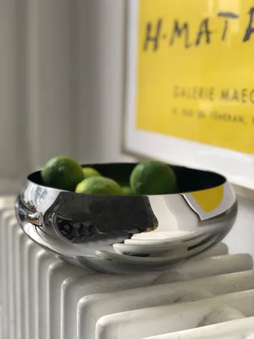 Tigela NEST Ø23 cm de Kay Bojesen é uma reintrodução de um dos desenhos anteriores em prata de Kay Bojesen que agora volta em aço inoxidável para oferecer uma qualidade mais contemporânea. NEST funciona perfeitamente como tigela de frutas, para servir alimentos ou como um detalhe decorativo em casa.