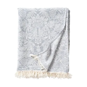 Sunflower manta 140x200 cm da Klippans yllefabrik da Suécia é feita de algodão com um padrão clássico desenhado por William Morris. A manta macia é perfeita como detalhe de decoração, ao mesmo tempo em que é deliciosa para envolver os ombros em uma noite fresca de verão.
