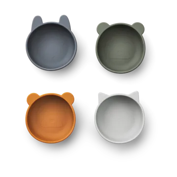 Iggy tigela de silicone 4 peças da Liewood são feitas de 100% silicone e são perfeitas para as primeiras refeições do bebé. Estas tigelas de silicone são inquebráveis, seguras para máquina de lavar loiça e decoradas com detalhes divertidos de animais. O tamanho compacto é ideal para pequenas porções ou snacks.