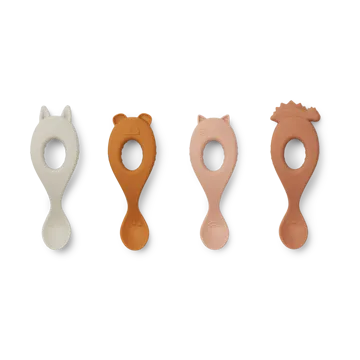 Livia colher 4 peças da Liewood são feitas numa combinação de silicone e nylon. Estas colheres de silicone são perfeitas para crianças que estão a começar a comer sozinhas – com pega ergonómica e pequenas marcações que facilitam segurar a colher. Detalhes coloridos e animais LIEWOOD tornam as refeições tanto divertidas como funcionais.