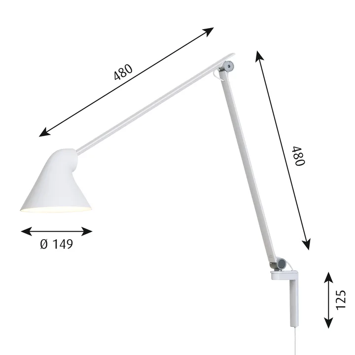 Candeeiro de parede com cabo longo NJP, Branco Louis Poulsen