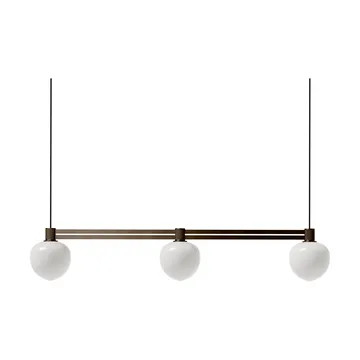 Pêndulo Memoir III Side By Side 120 é parte de uma família de produtos desenhada por GamFratesi, fabricada em vidro opalino e metal. Este pêndulo possui um contorno gráfico que pode ser conectado em várias composições, criando uma silhueta escultural que se encaixa perfeitamente em espaços contemporâneos.