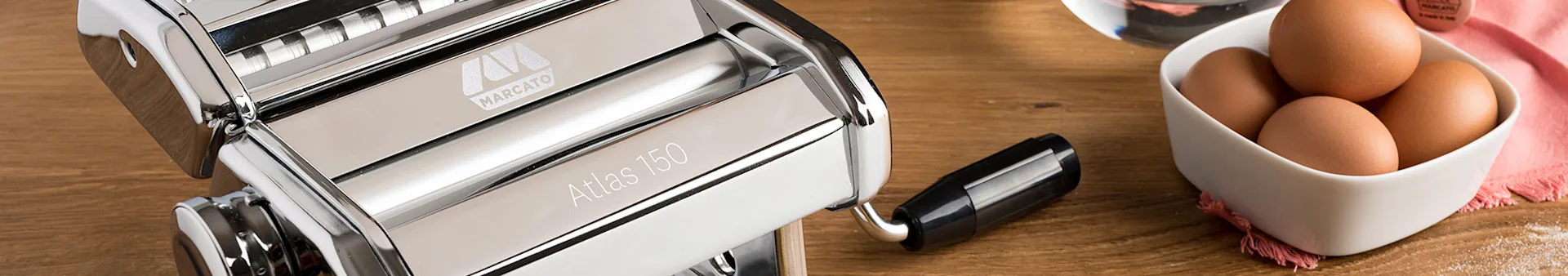 As máquinas de fazer massa Marcato são feitas de alumínio. Os rolos entre os quais a massa é prensada são feitos de alumínio andonizado, pelo que não tem de se preocupar com a possibilidade de a massa ficar contaminada com metal proveniente da máquina.