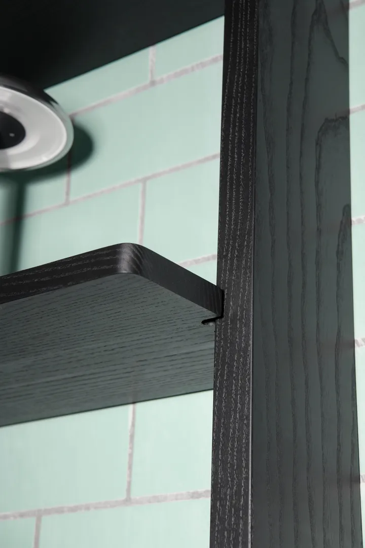 Gridlock Painel de ligação H1460 é uma lateral central para o sistema de prateleiras Gridlock da Massproductions. Este sistema de prateleiras em madeira consiste em laterais e prateleiras de diversos tamanhos que são combinados para criar uma estante de parede personalizada de acordo com suas necessidades e sua casa. Embora a construção do sistema de prateleiras possa parecer simples à primeira vista, levou vários anos para desenvolver a estrutura com os componentes inovadores que facilmente travam a lateral e as prateleiras entre si, proporcionando uma aparência integrada. Graças à construção inteligente, é possível criar uma estante de parede com linhas horizontais contínuas que oferecem uma impressão harmoniosa e organizada. O Gridlock pode ser facilmente alterado ou expandido conforme necessário, complementando com mais peças. O sistema de prateleiras é feito de freixo certificado pelo FSC e está disponível em três acabamentos diferentes. As prateleiras são feitas de freixo maciço e as laterais são feitas de compensado com revestimento de folheado de freixo.